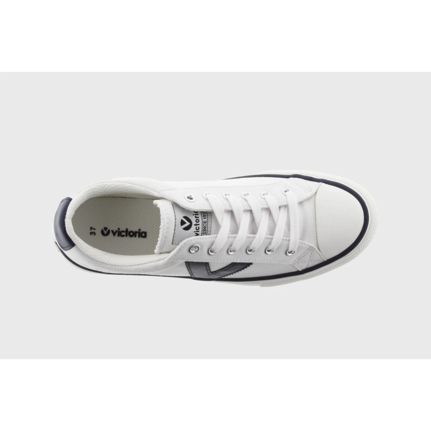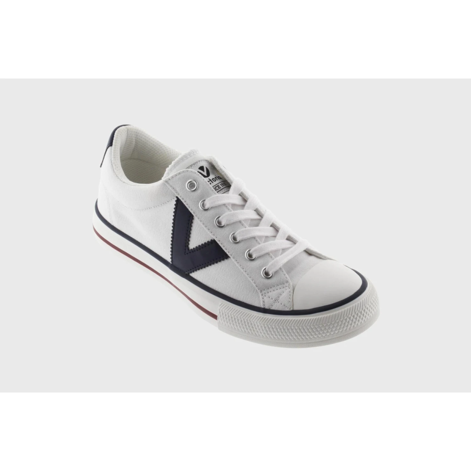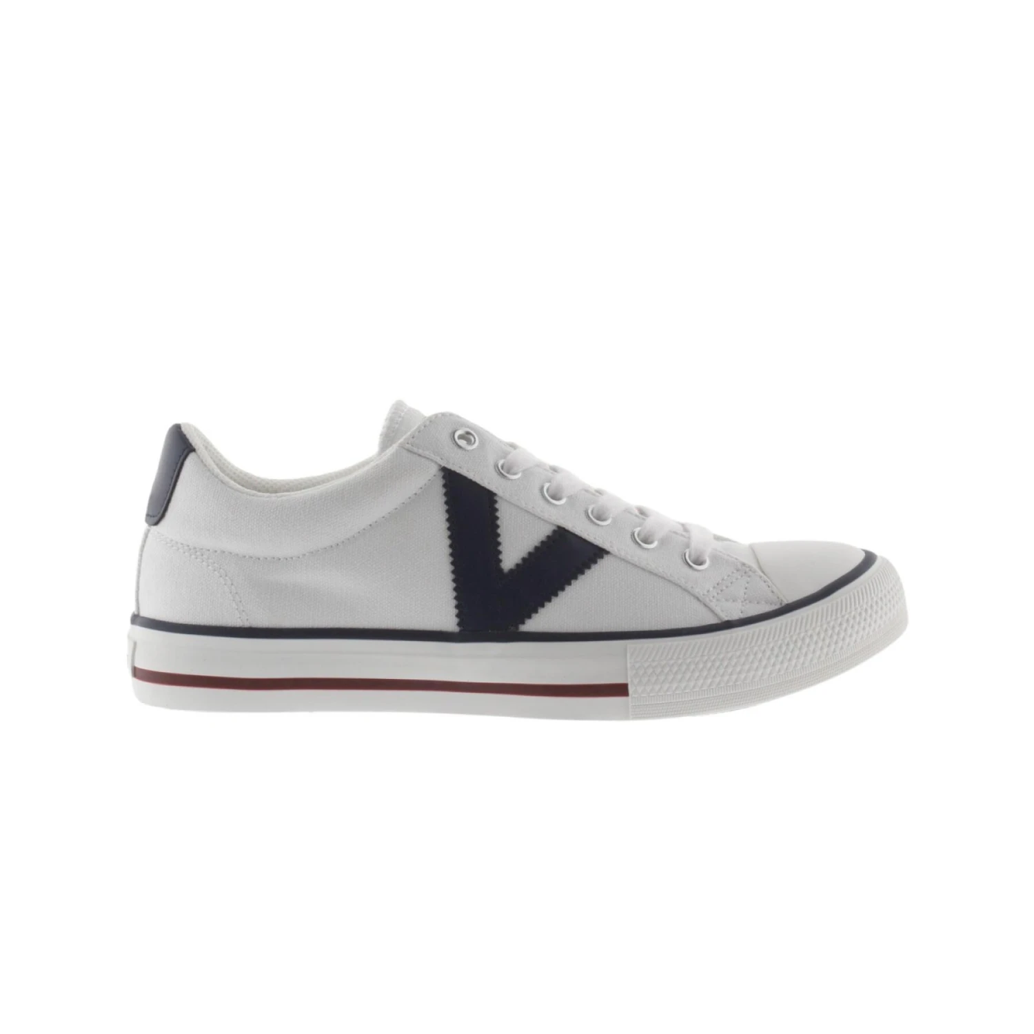 Nuovo design delle nostre classiche sneakers a taglio basso. Realizzato in tela con un lato a V a contrasto da Victoria.