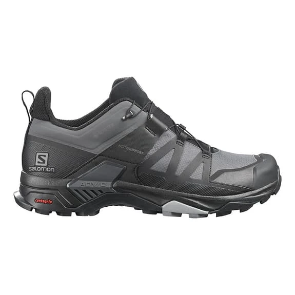 Le scarpe Salomon X Ultra 4 GORE-TEX sono costruite per la massima performance in salita e in discesa, agili come una scarpa da trail running, ma con tutta la stabilità, l’aderenza e la protezione impermeabile necessarie per affrontare i terreni tecnici. Con un nuovo chassis, questa scarpa offre una protezione ancora migliore per le articolazioni sensibili senza sacrificare la libertà di movimento. Grazie all’esperienza nel trail running, questa scarpa è più leggera e più agile, potrai volare su terreni irregolari. Il nuovo ADV-C Chassis protegge le articolazioni della parte esterna del piede per ottimizzare la stabilità senza limitare la mobilità. La suola Contagrip MA fa presa sul terreno (anche su terreni bagnati o scivolosi), dandoti più controllo, soprattutto in discesa.